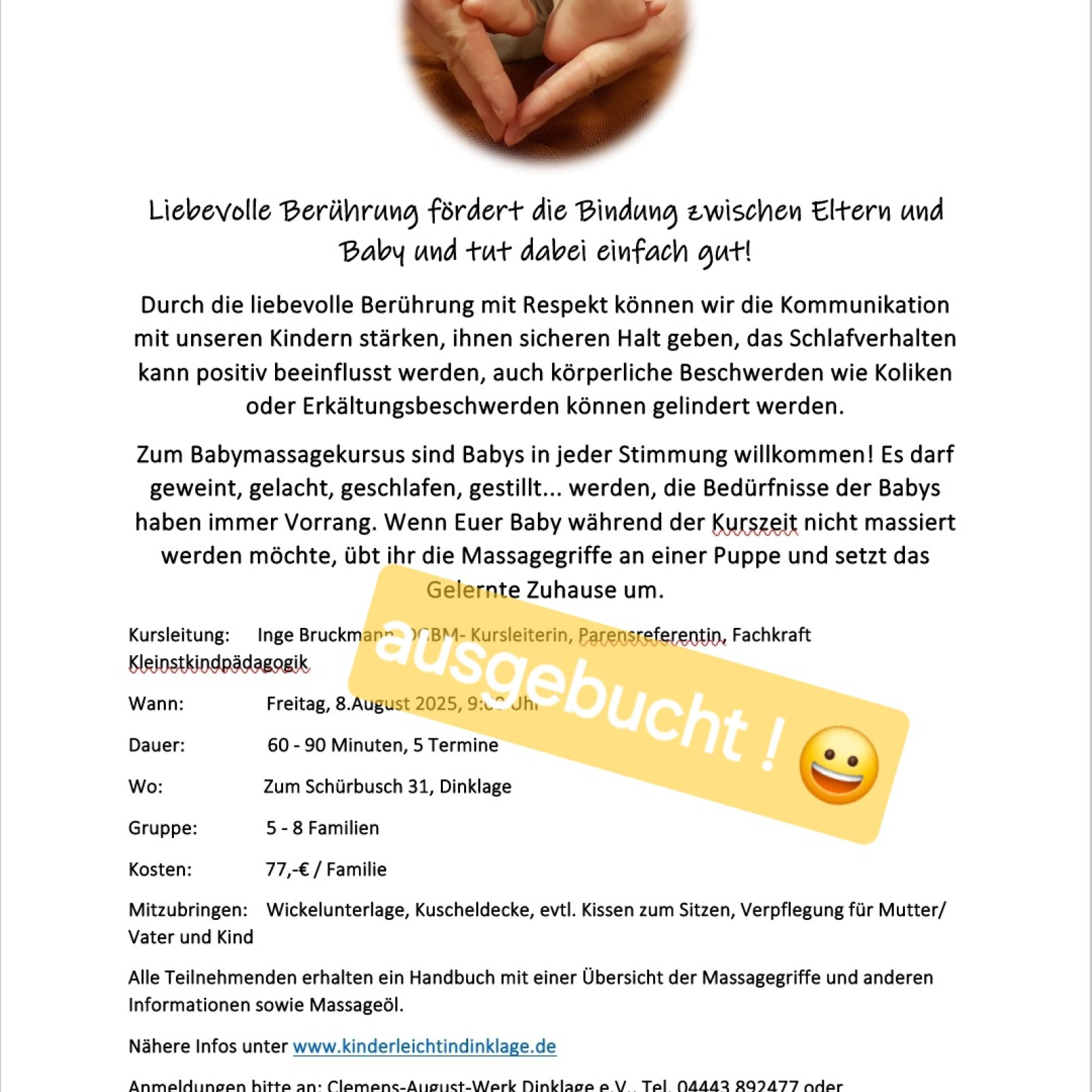 Darüber hinaus leite ich in Dinklage und anderswo Babysitterkurse, nähere Einzelheiten finden Sie im Menü.