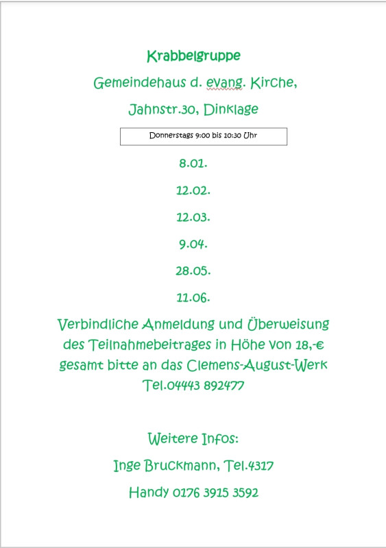 Große Freude macht mir eine Aufgabe, die ich ehrenamtlich für die evangelisch-luth.Kirchengemeinde Dinklage ausführe: Ich besuche Familien, die ein Baby bekommen haben und in denen mindestens ein Elternteil zur Gemeinde gehört.
